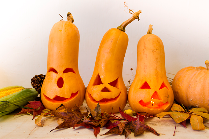 Take a look at the butternut squash—with its distinct shape, it could be your unconventional carving canvas, especially if you want to carve a skull or recreate the “Scream” mask. Apart from making a perfect jack-o’-lantern, you can use its flesh for cooking a delicious fall side dish or a soup, roast it or add to a warm salad – there are tons of recipes for the butternut squash!