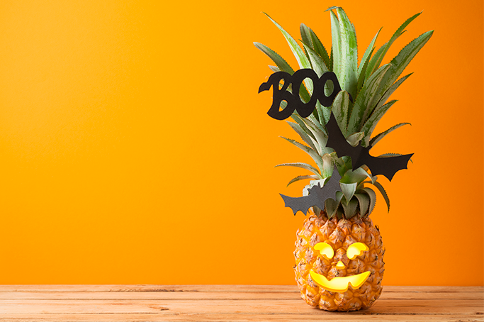 Next brilliant jack-o’-lantern alternative for a pumpkin is a pineapple. Not only does it naturally look pretty strange and scary with its spikes and all, but when carved, it is really spooky.