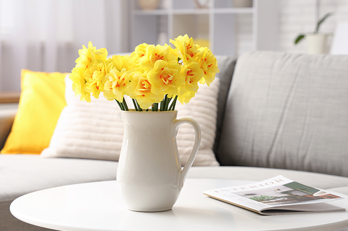 The sheer vibrancy of yellow flowers is a beautiful way to express your feelings, as the color itself radiates happiness, energy, and joy. If you want to brighten up a day for your friends and celebrate your best moments, tulips and chrysanthemums in a bouquet or a potted Kalanchoe will be the best choice.