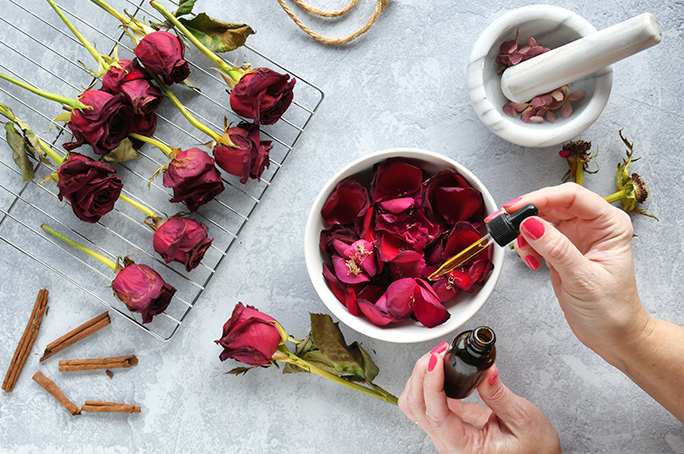 - Dried flowers and herbs: you may choose to dry them in an oven or hang them upside down in a cool, dark place (the latter option takes a bit more time, though).