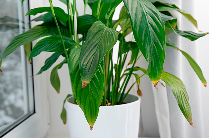 • Brown, curled leaves with crispy edges
