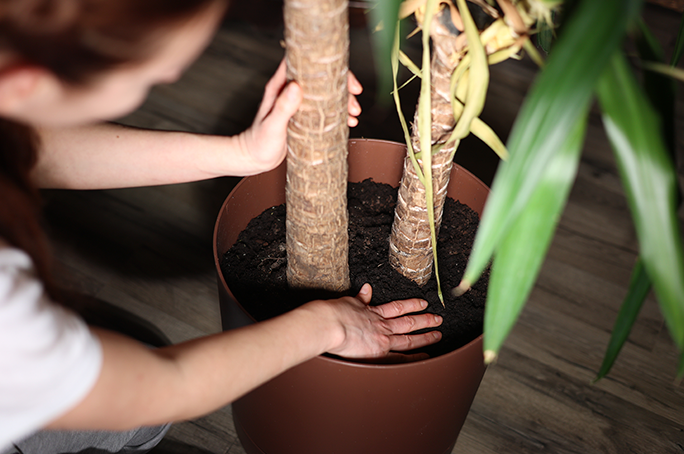 • Parched soil, a gap between the soil and the pot walls